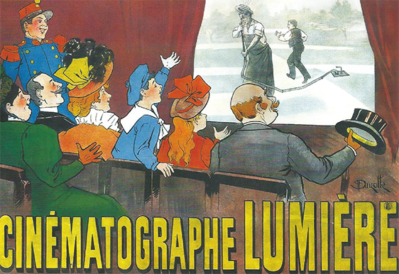 뤼미에르 형제는 시네마토그라프를 활용하여 공장 종업원들이 일을 마치고 공장의 문을 나서는 모습을 담은 1분 남짓의 영화 <뤼미에르 공장의 출근>을 촬영하여 상영합니다.