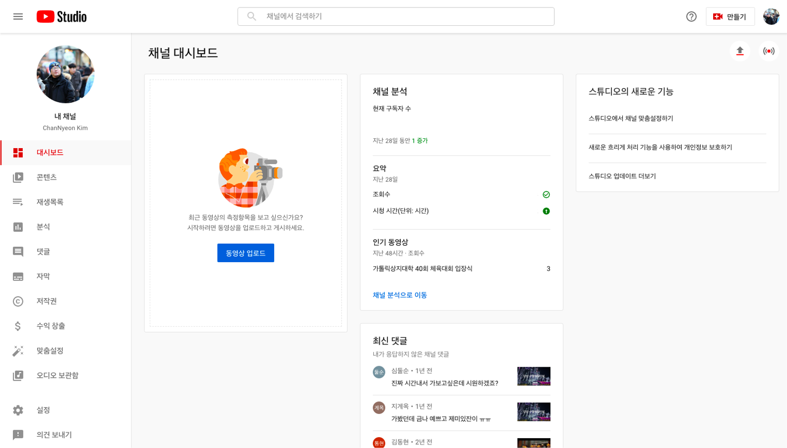Youtube 스튜디오 입장