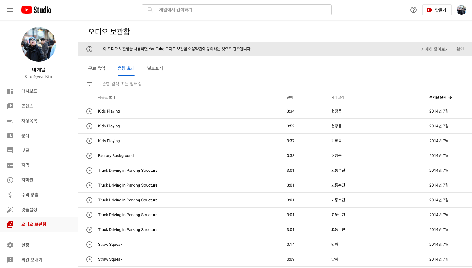 유튜브 영상 편집시 무료 음악, 음향 효과 활용하기