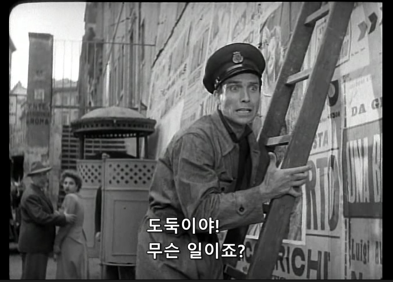 영화 <자전거 도둑>은 잃어버린 자전거를 찾기 위해 이틀 동안 로마 시내 곳곳을 돌아다니는 아버지와 아들의 이야기입니다. 이 과정에서 우리는 2차 세계 대전 전쟁에 패한 이탈리아 로마의 허름한 거리와 더불어 수많은 실업자들과 부랑자들로 넘쳐나는 생생한 현실을 목격하게 됩니다.