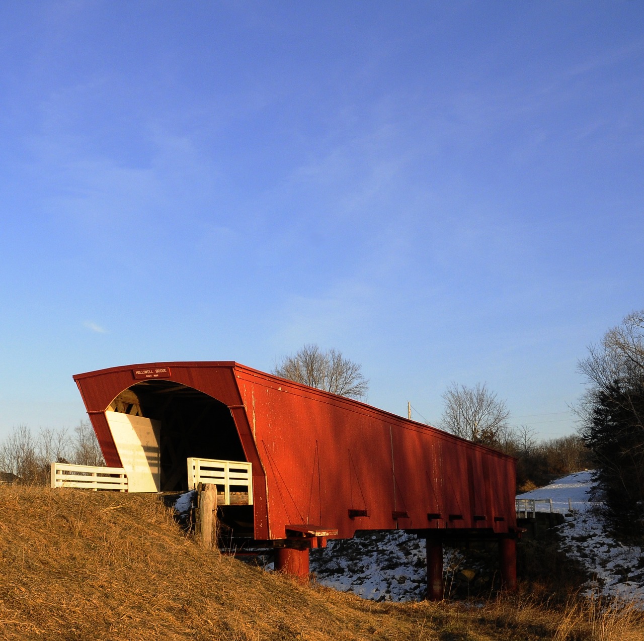 영화에 나온 남녀 둘이 사랑을 나누던 다리는 특정종교의 광신도에 의해 2002년 9월 3일 불태워지고 말았는데요. "이런 불륜 저질극이 찍힌 더러운 흔적을 지워야 한다"며 불태워 버려서 팬들이 무척 아쉬워했다고 알려졌습니다. 하지만 영어 제목에서 보듯 매디슨 카운티에 있는 유개교는 여러 개이고, 영화촬영도 여러 다리에서 촬영되었습니다. 이 중 한 개의 다리(Cedar Bridge)가 불탄 것입니다. 그마저도 2004년에 복원되었습니다. 그러나 2003년 10월 6일에는 극중 프란체스카의 집으로 나온 집도 방화로 불태워지고 말았습니다.