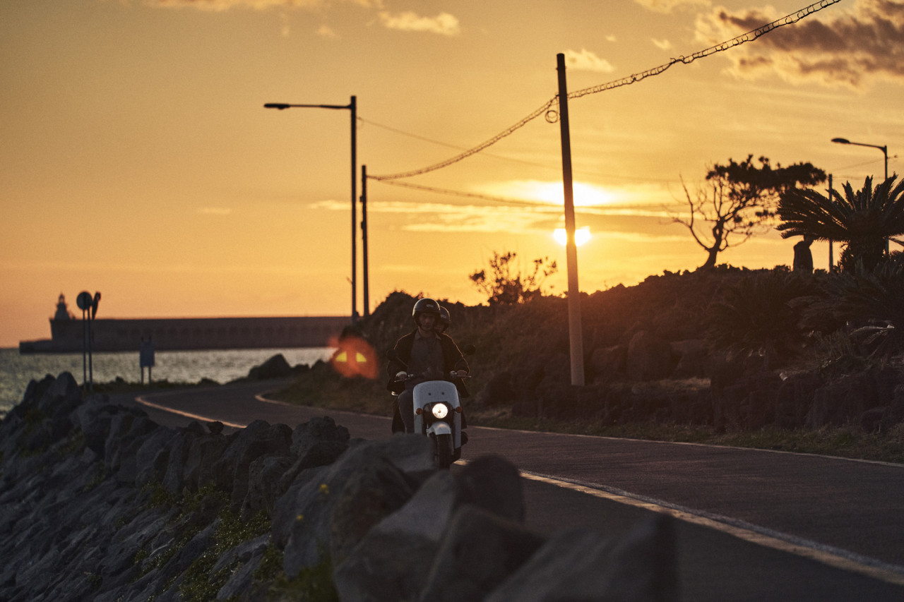 제주도의 멋진 배경은 이 배우에게는 큰 선물과도 같은 느낌입니다.