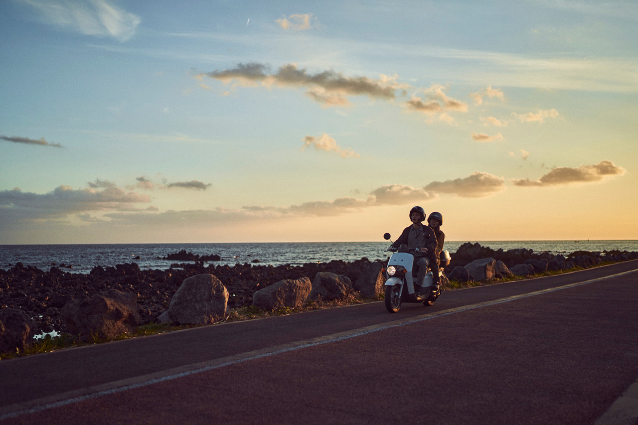 제주도의 멋진 배경은 이 배우에게는 큰 선물과도 같은 느낌입니다.